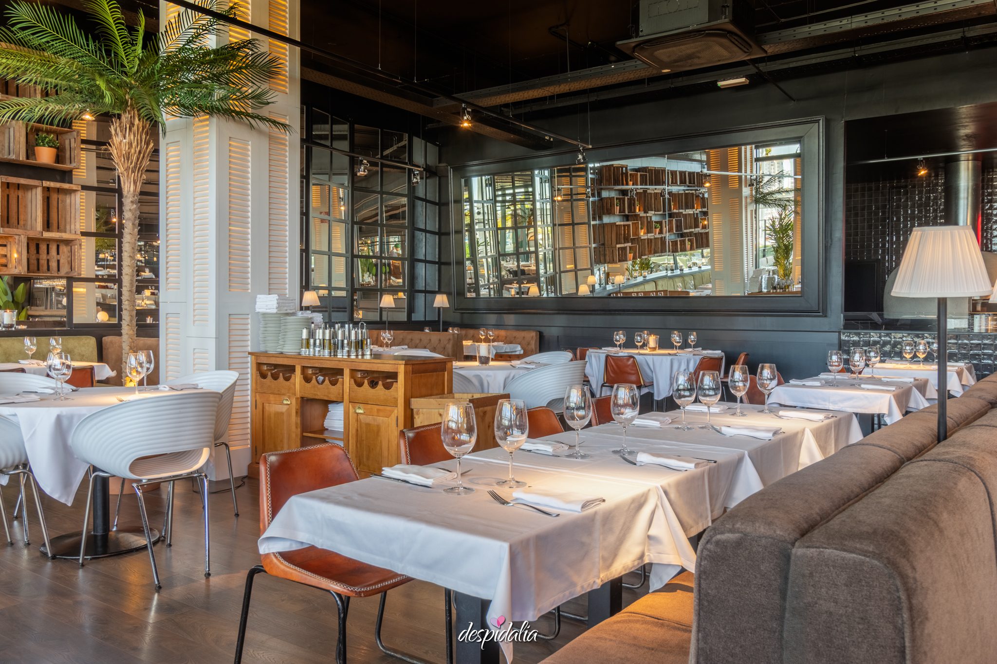 Este restaurante destaca por su ubicación privilegiada junto al mar, en la zona del Port Olímpic, con un ambiente moderno y amplio pensado para grupos.